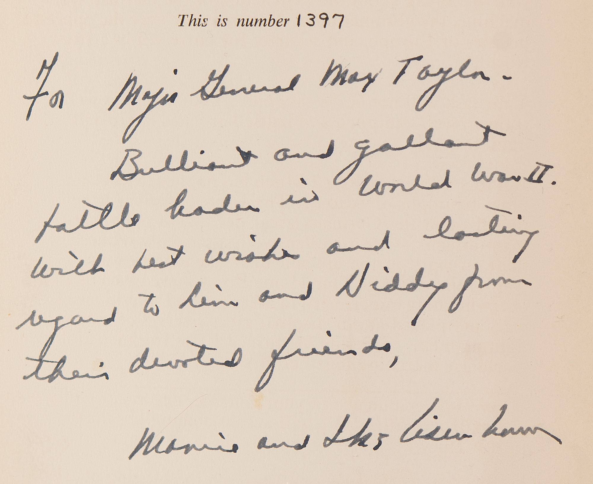 “For Major General Max Taylor – Brilliant and gallant battle leader in World War II. With best wishes and lasting regard to him and Diddy from their devoted friend, Mamie and Ike Eisenhower"