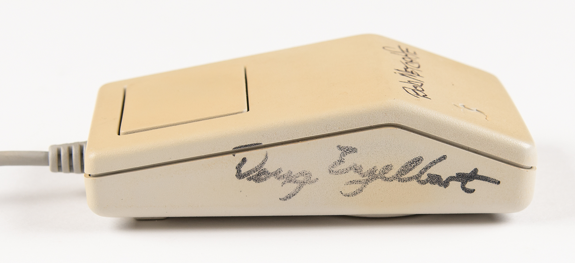 One-of-a-kind Apple Macintosh mouse signed by tech visionaries Douglas Engelbart, Robert Metcalfe, Ted Nelson, and Dan Bricklin