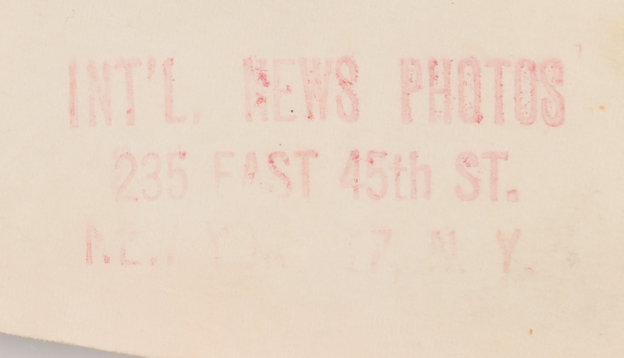 This iconic photo of Einstein was taken on his 72nd birthday, March 14, 1951, by United Press International photographer Arthur Sasse. After a birthday celebration at the Princeton Club, Einstein was mobbed by photographers and reporters as he made his way into a friend's car to go return home. Sasse held back until he could get closer, then yelled to get his attention, 'Ya, Professor, shmile for your birthday picture, ya?' Tired of smiling for the cameras all day long, Einstein turned around and stuck out his tongue. Luckily, Sasse was quick enough to capture the moment and create what became one of the most well-known photographs of the 20th century. The original photo shows Einstein in between Dr. Frank Aydelotte, the former head of the Institute for Advanced Study, and his wife. After seeing it in the newspaper, Einstein sent a letter to International News Photos to request nine prints to give to his friends, and asked that the image be cropped to show his face only. This is one of those examples—an original International News Photos print, cropped per Einstein's specifications and given to him to distribute to close friends.