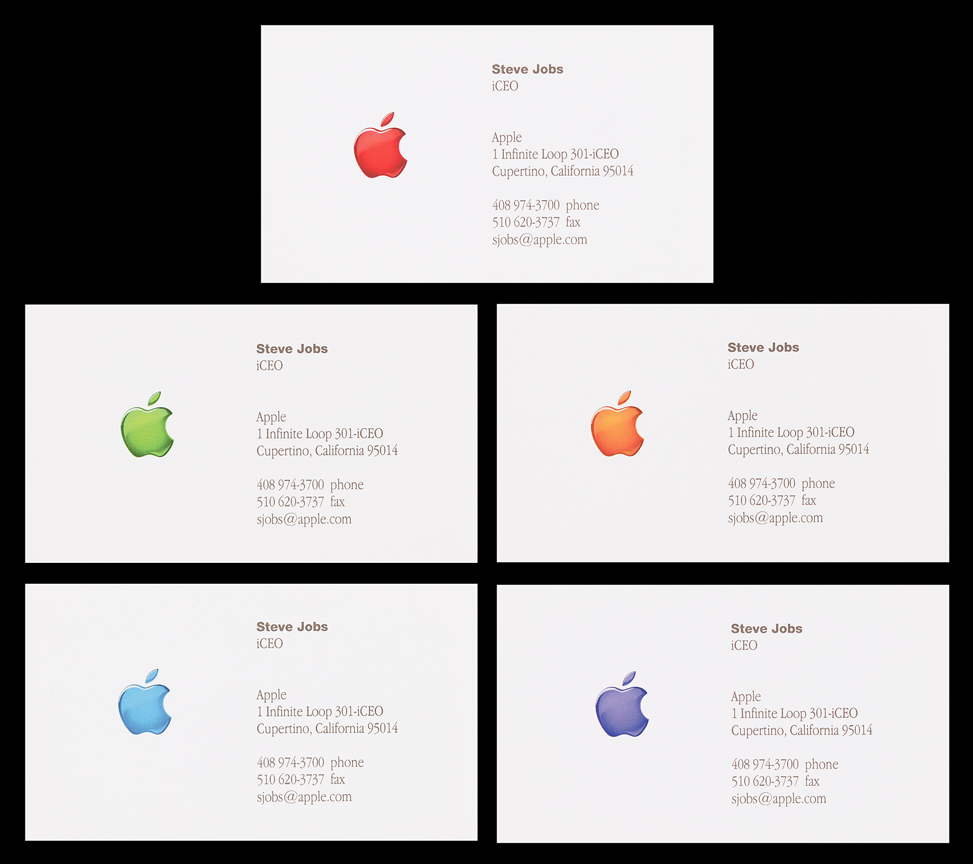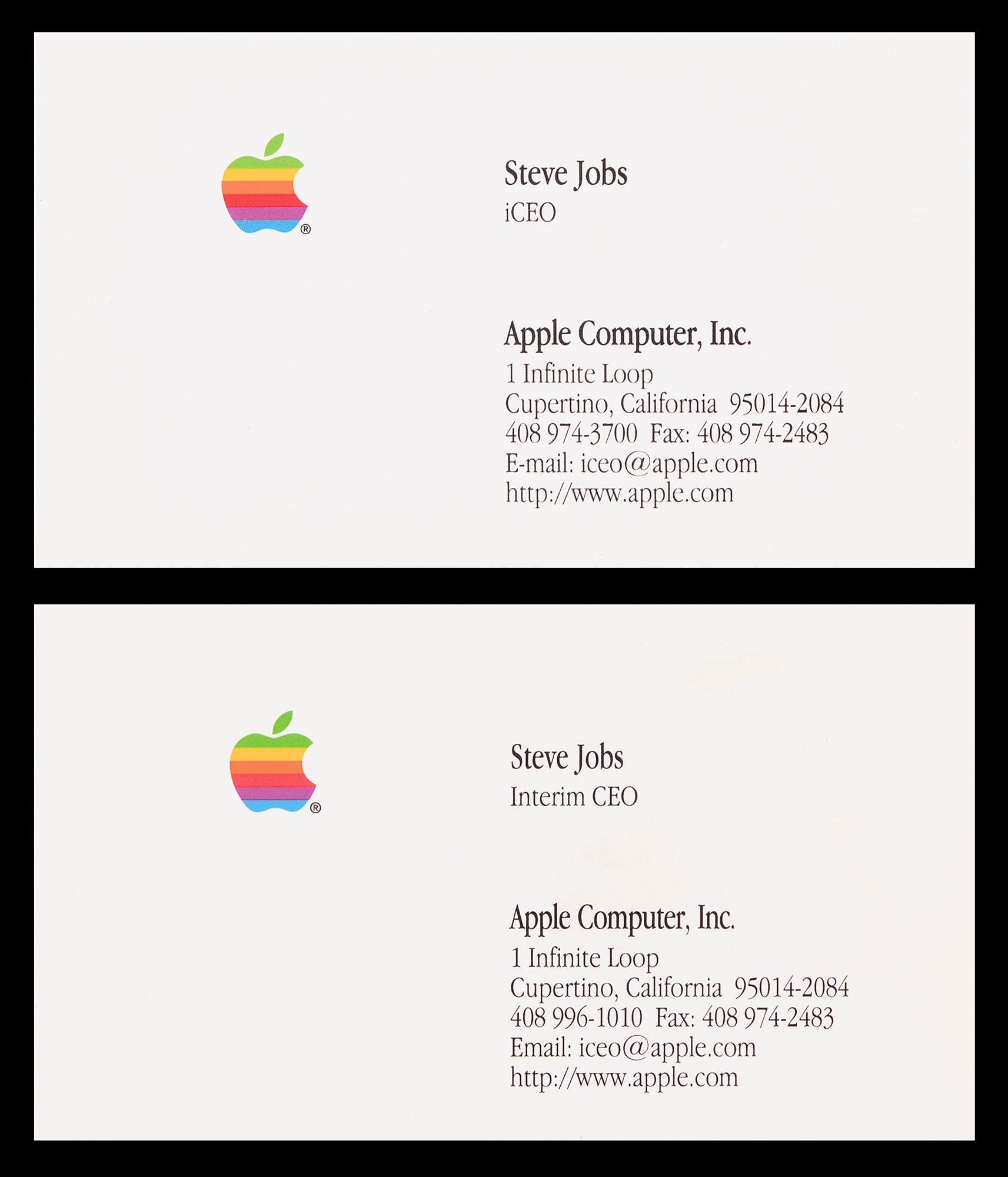 Scarce septet of Apple business cards from Jobs' return to Apple in 1997, when he became "Interim CEO" and "iCEO"