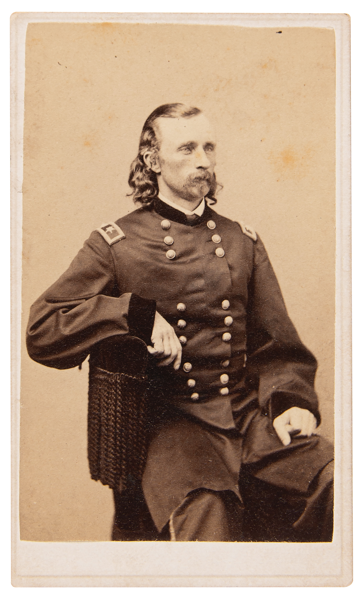 Also includes a fantastic 2.5 x 4 carte-de-visite photo of the handsome General George A. Custer in uniform, seated in a three-quarter-length pose, with his long blonde curls clearly displayed. Published by John Goldin & Co. of Washington, D.C., and identified on the reverse in an unknown hand. In overall fine condition.