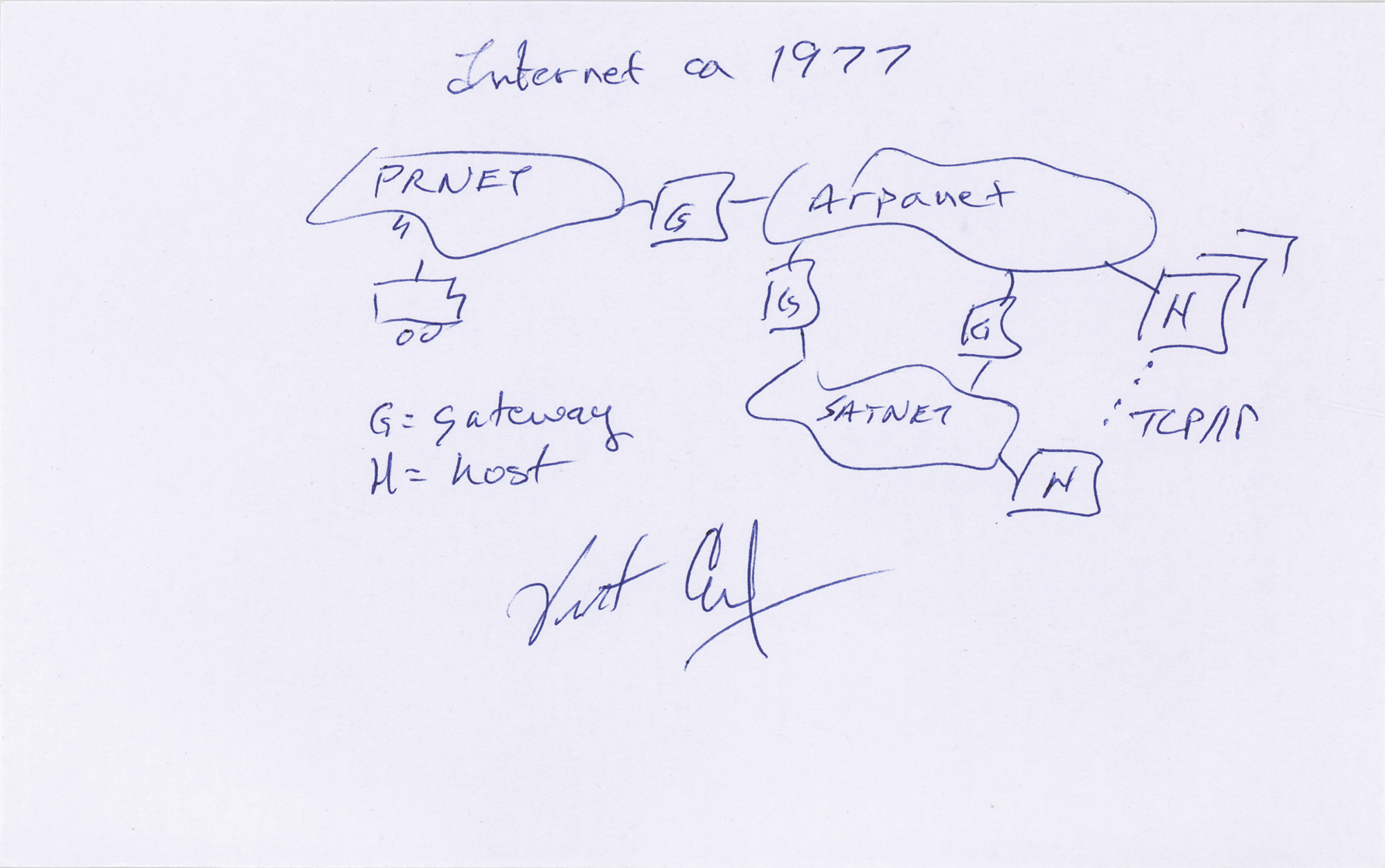 Vint Cerf Signed Sketch - "Internet ca. 1977"
