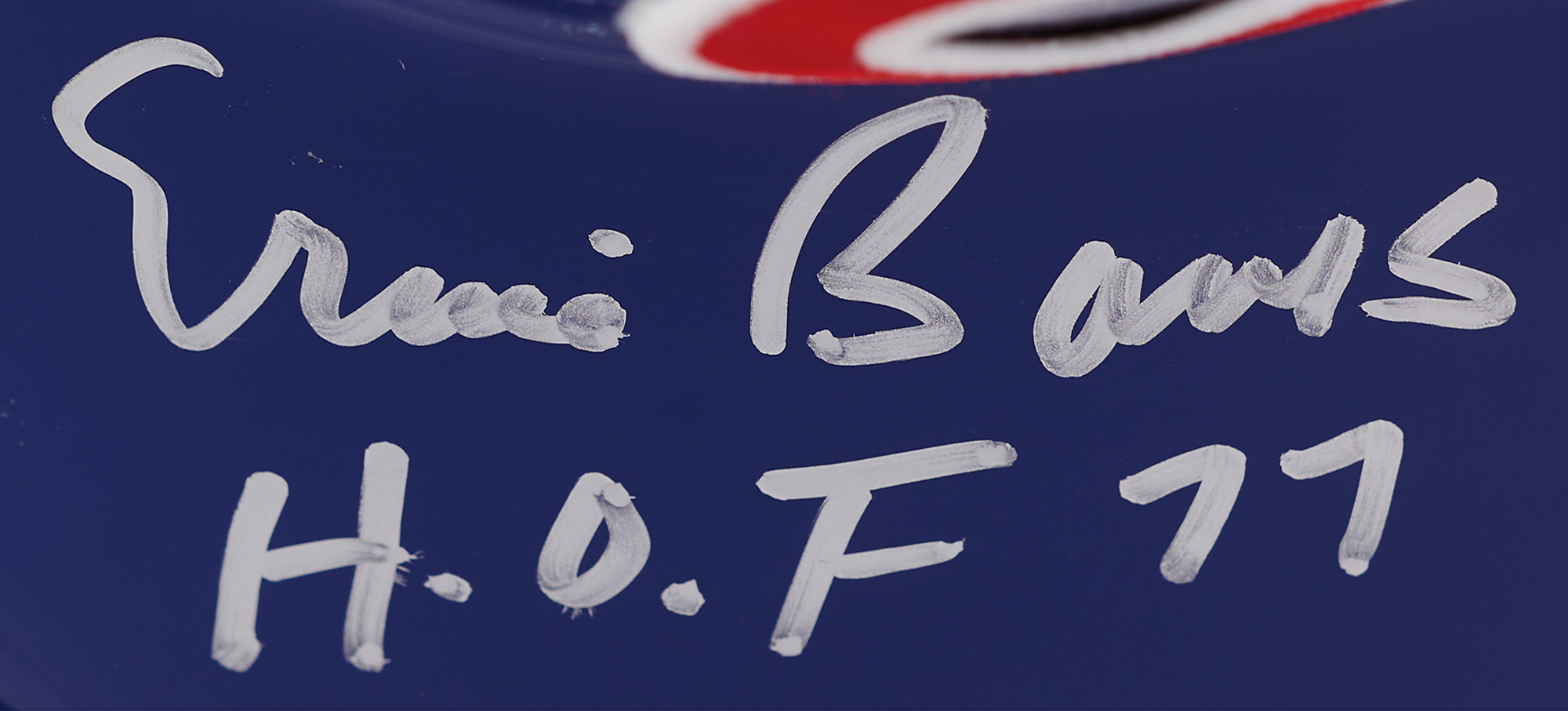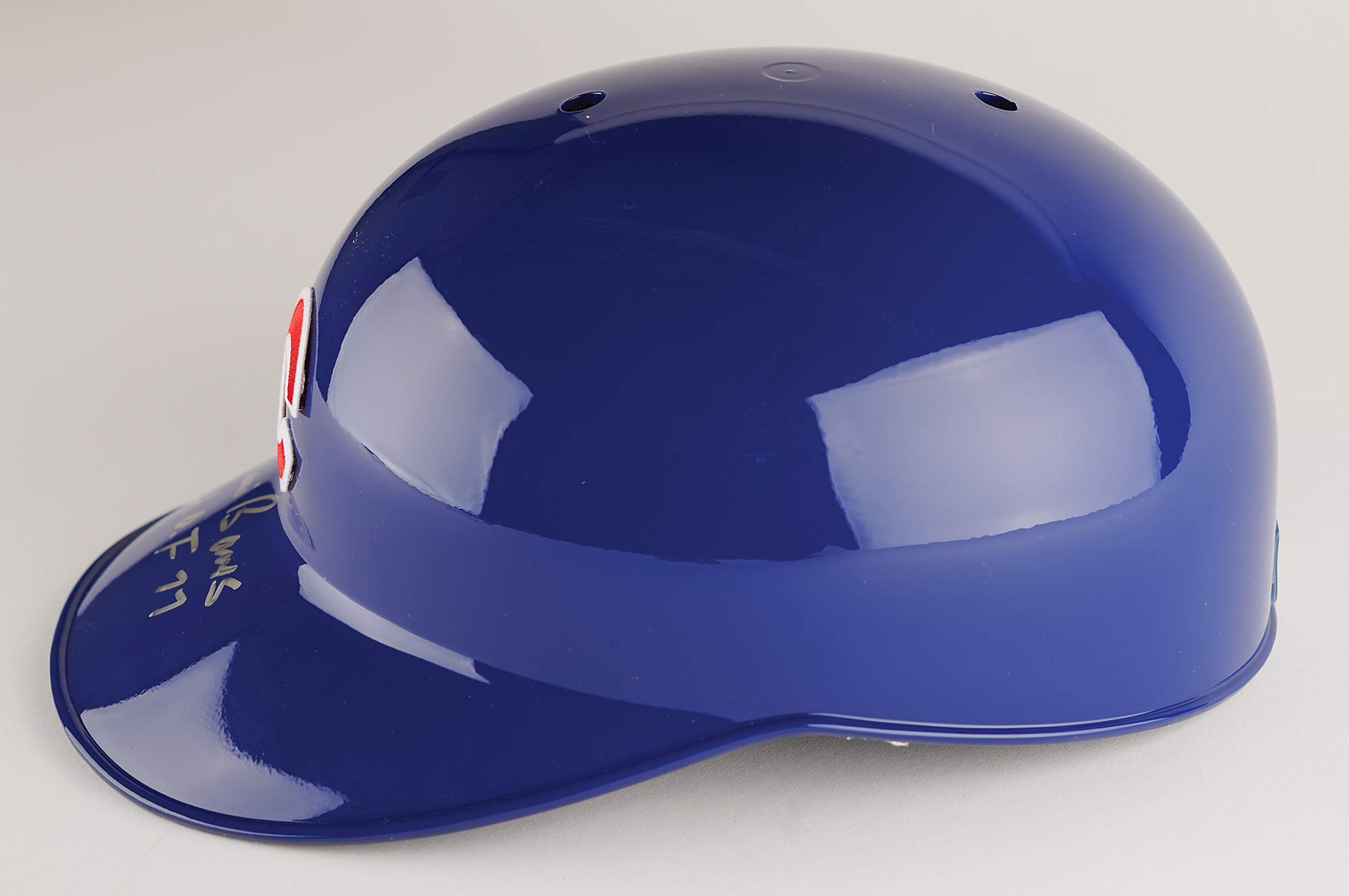 Official Rawlings Chicago Cubs batting helmet, signed on the bill in silver ink, "Ernie Banks, H.O.F. 77." In very fine condition, with a Beckett authentication label affixed to the rear.