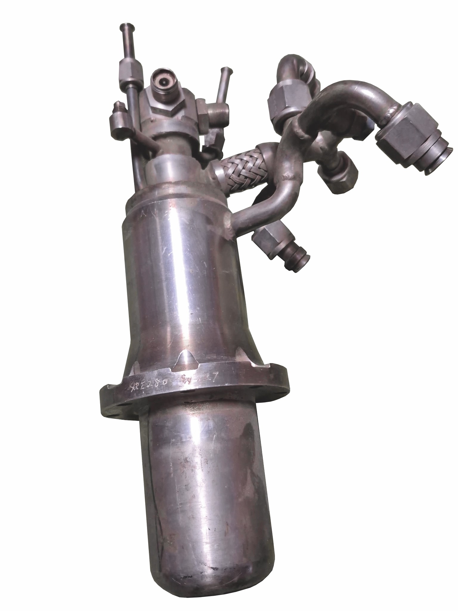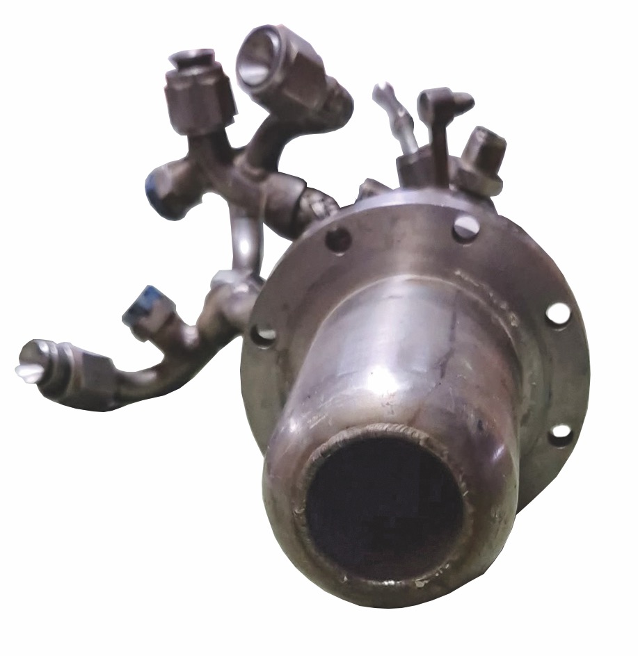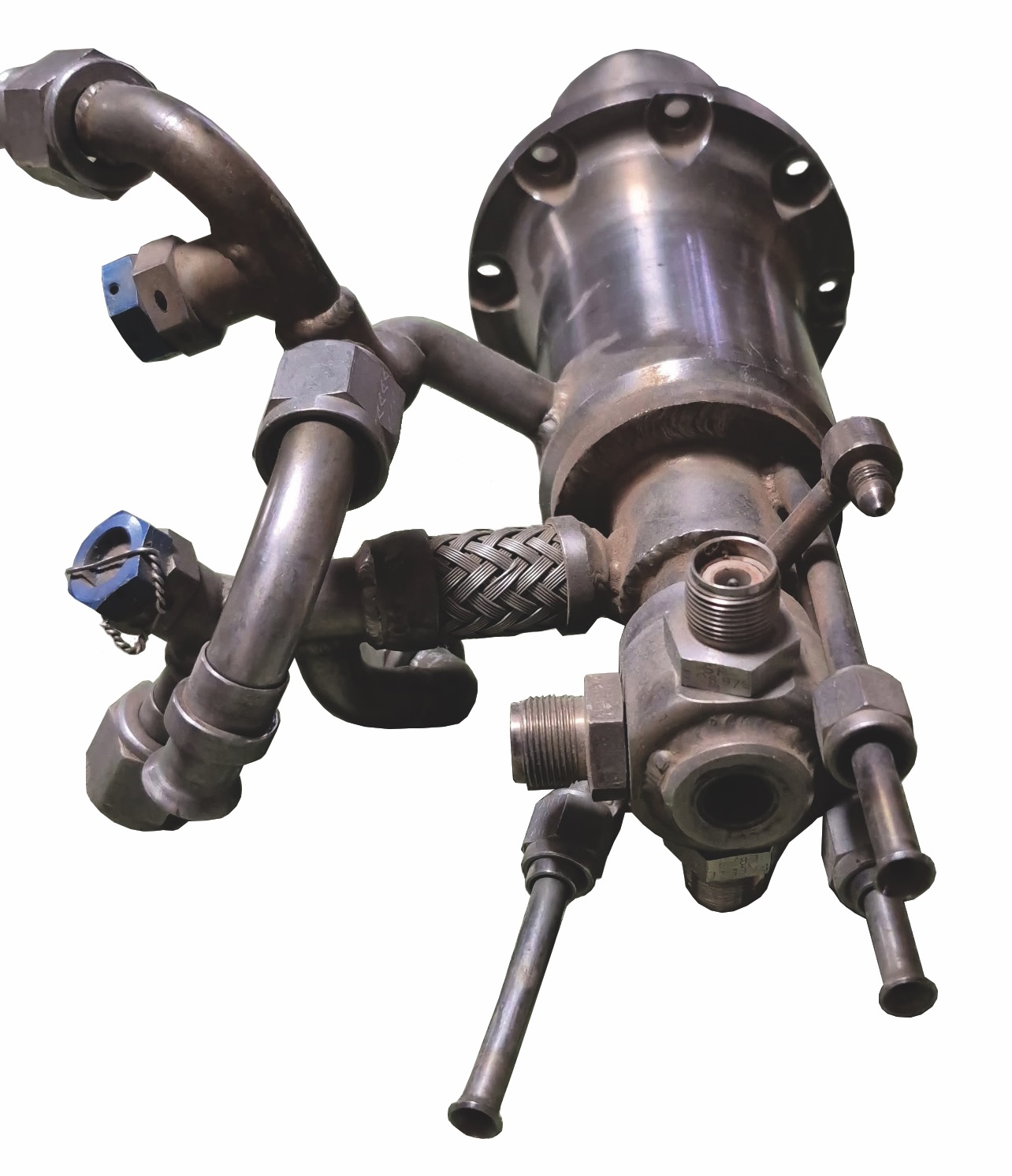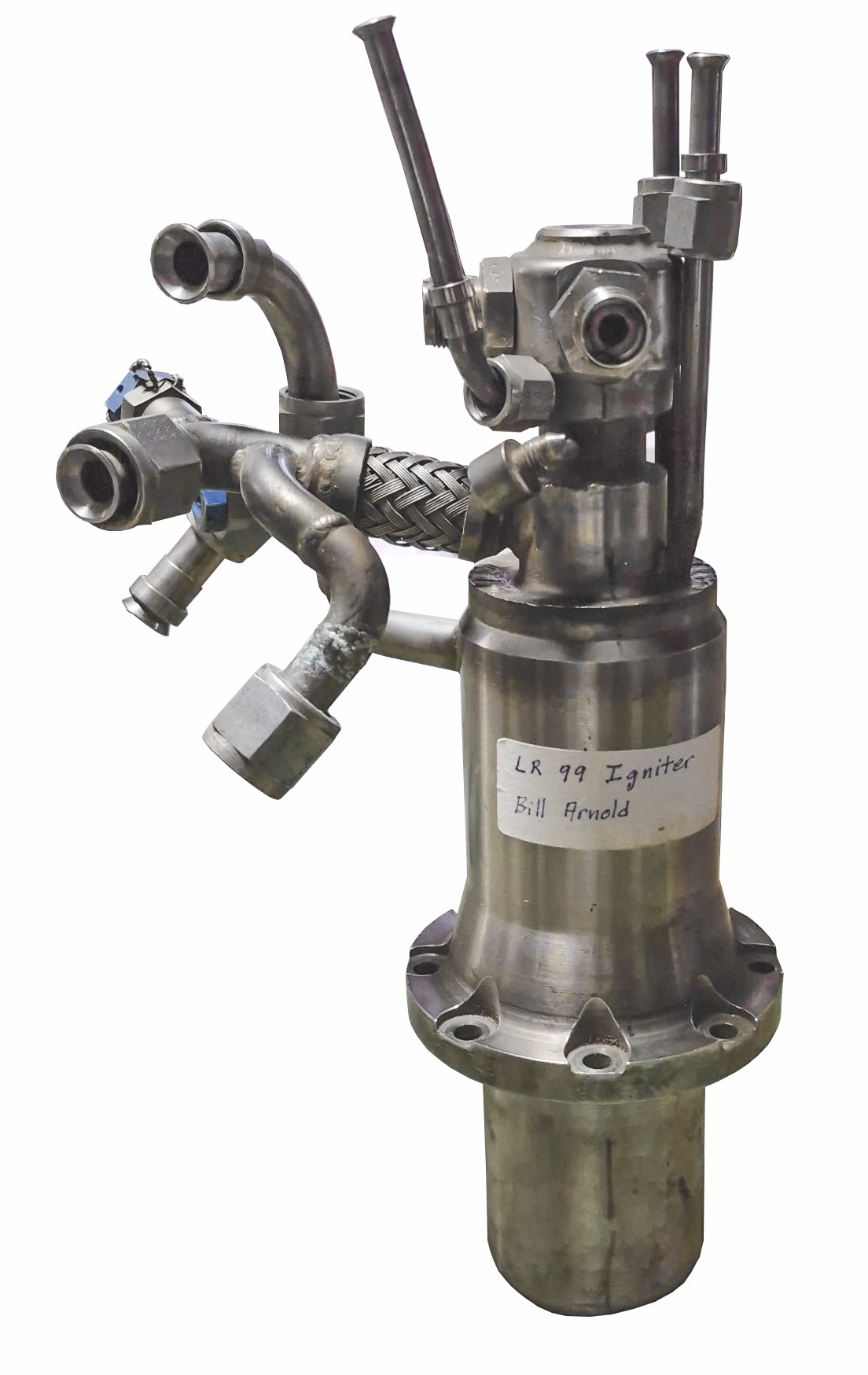 This igniter assembly was part of the engine’s gas-generator start system, which was responsible for initiating the engine’s turbopump cycle. During startup, a small amount of propellant was introduced into the igniter, where it was sparked and burned, producing a flame that ignited the gas generator. The gas generator then created hot gases that spun the turbopump, allowing propellants to be pumped into the main combustion chamber and enabling the rocket engine to operate. Without this ignition sequence, the XLR-99 engine could not start, making components like this essential to the operation of the X-15’s propulsion system.