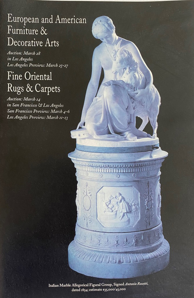 While Mary and Marc had absolutely no furniture, Marc's "collecting bug" arose and he began purchasing exquisite white carrara marble statuary from the 19th century. The sixty-piece collection was auctioned in March 1995 at Butterfield & Butterfield in Los Angeles. The main buyer, in the audience that evening, Sylvester Stallone. The estate was twice used as the Pasadena Showcase House of Design in 1985 and 1995. Some sixty plus feature films, and major television shows were filmed on location in the twenty years the couple lived there. The home was used as the "Playboy Mansion" in the 1983 feature film "Star 80" the story of Playboy model Dorothy Stratton.